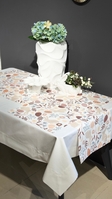 Виріб виготовлений з якісної тканини з тефлоновим покриттям, що забезпечує водовідштовхувальні властивості та захист від плям. Скатертина не вбирає рідину, легко очищується та зберігає гарний вигляд навіть після багаторазового використання.