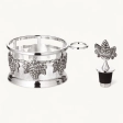 Елегантна підставка для пляшки Edzard декорована фігуркою винограду та виконана зі щільним посрібленням, що надає виробу розкішного вигляду. Висота підставки — 10 см, діаметр — 9 см, що робить її зручною для більшості стандартних пляшок.У комплект входить пробка для пляшки, яка допомагає зберегти свіжість напою та додає практичності у використанні. Цей стильний аксесуар стане чудовим доповненням святкового столу або подарунком для поціновувачів преміум-посуду.