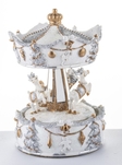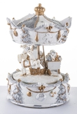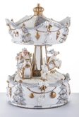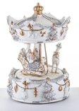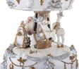 Елегантна карусель з музичною скринькою — ідеальний акцент для новорічного декору. Біло-золота кольорова гама додає святкової розкоші, а поєднання пластику та скла робить виріб міцним і візуально витонченим. Карусель створює чарівну атмосферу затишку, чудово підходить для декору дому або як подарунок на новорічні свята.