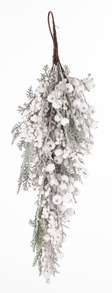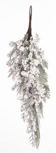Срібна новорічна гілочка з зеленими листочками 65×31×15 см
