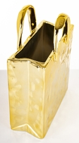 Елегантна декоративна ваза у формі сумочки в розкішному золотому кольорі стане стильним акцентом у будь-якому інтер’єрі. Оригінальний дизайн поєднує сучасну естетику та витонченість, завдяки чому ваза виглядає як справжній арт-об’єкт. Вона чудово підходить для сухоцвітів, декоративних гілок або як самостійний елемент декору на полиці, комоді чи журнальному столику.